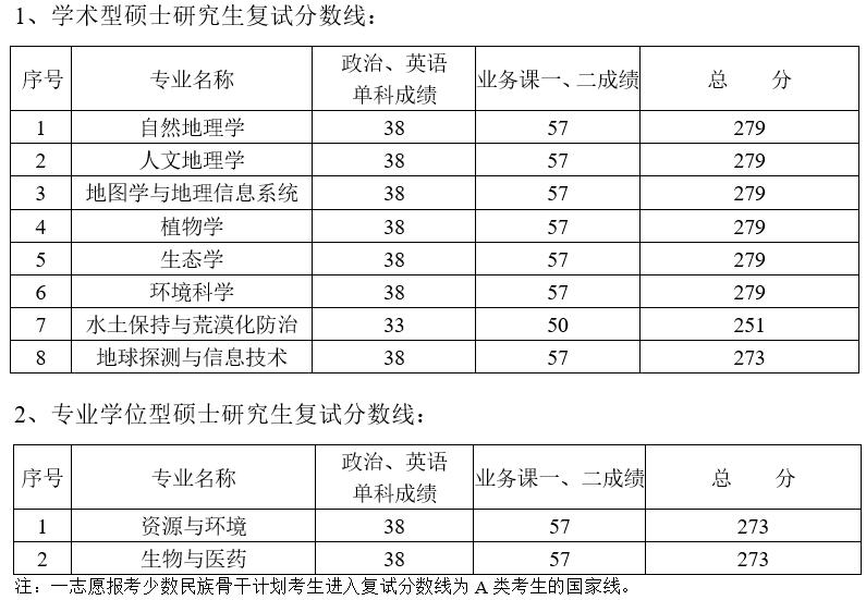 根据《2023年全国硕士研究生入学考试复试最低分数线》,结合上线生源数、招生计划数等,确定我所学术型和专业学位研究生的复试基本分数线如下: