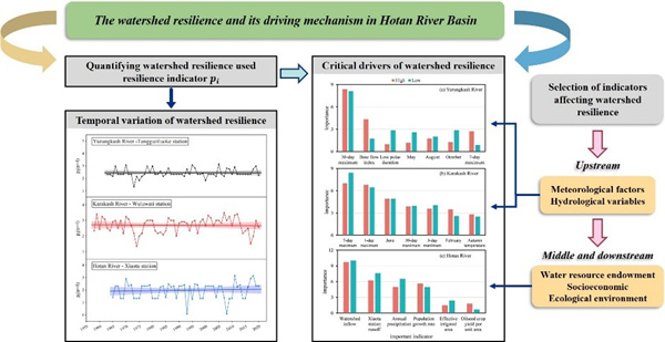针对上述问题,乐发Ⅱ2阿克苏绿洲农田生态系统国家野外科学观测研究站郝兴明研究员团队以和田河流域为研究区,研究了1958-2020年和田河流域恢复力的时空变化规律,构建流域上游产流区和中下游耗水区水资源恢复力的评价指标体系,结合随机森林模型和主成分分析法,揭示了产流区和耗水区流域恢复力的驱动机制。