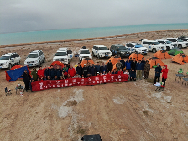 科考人员在阿雅克库木湖边合影。图片由昆仑山北坡水资源科学考察队提供