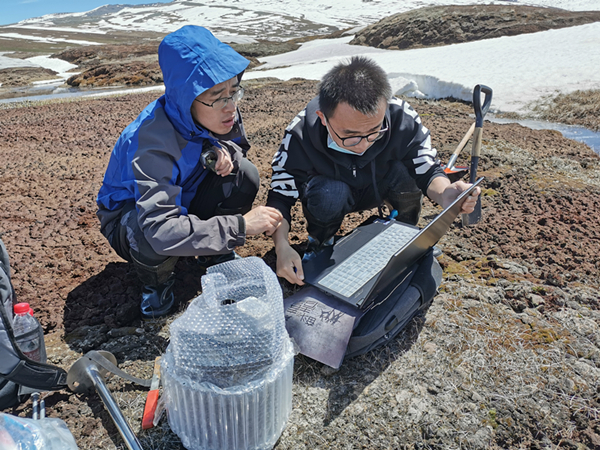 2019年入选“博新计划”的乐发Ⅱ2博士后张东良(左)在野外采集样品。图片由自治区人社厅提供
