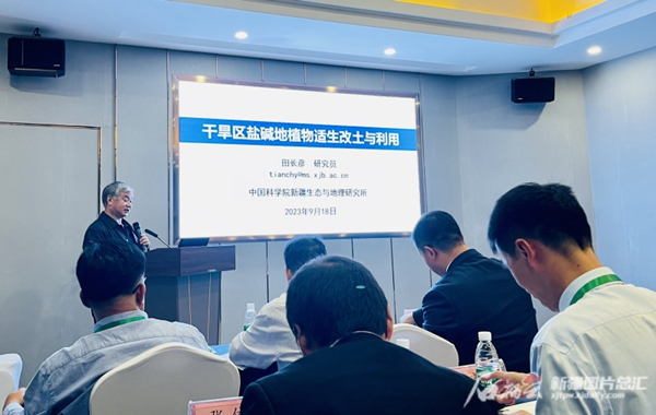 田长彦及其团队长期研究盐碱地耐盐植物与农业发展课题。在论坛上,田长彦介绍了耐盐植物的“吃盐”原理以及对土壤改良的效果。他说,传统盐碱土壤改良,是用大水“洗”盐。随着耕地面积的扩大和人口的增长,新疆对水资源的利用方式发生了改变。耐盐植物可以“吃掉”土壤的一定盐分,待耐盐植物把盐“吃掉”后,再将其移走,土壤中的盐分就会有所降低。