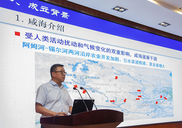 张元明介绍“ANSO绿色咸海科学倡议项目办公室”成立背景和工作计划