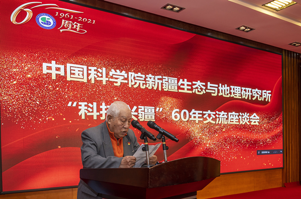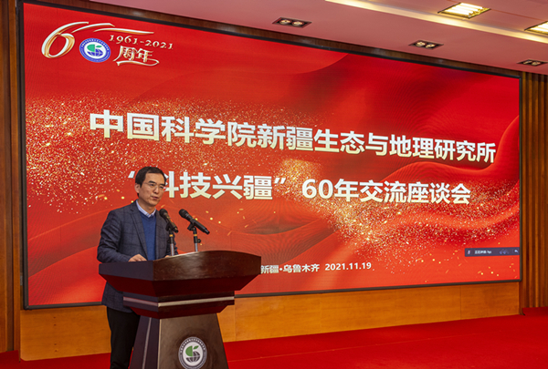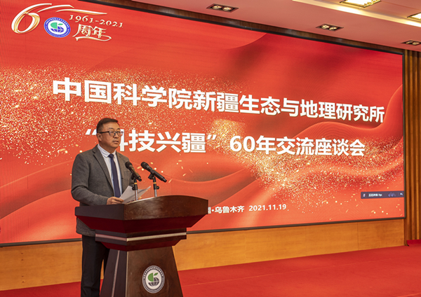 会议指出,六十年前,生地所的老一辈科技工作者积极响应党和国家的号召,怀着科学报国、科技戍边的崇高理想,积极投身于开发和建设新疆的伟大实践,留下了“扎根边疆,艰苦奋斗,为各族人民服务”的优良传统。多年来,研究所坚持在新疆资源和生态环境领域深耕研究,围绕自然资源开发、生态修复、环境治理、生物多样性保育和区域可持续发展等重大问题开展研究和试验示范,产出了一批高水平科技成果,为推进新疆经济社会发展作出了重要贡献,在我国干旱区生态与环境领域发挥不可替代的骨干和引领作用,谱写了科技兴疆的绚丽篇章。