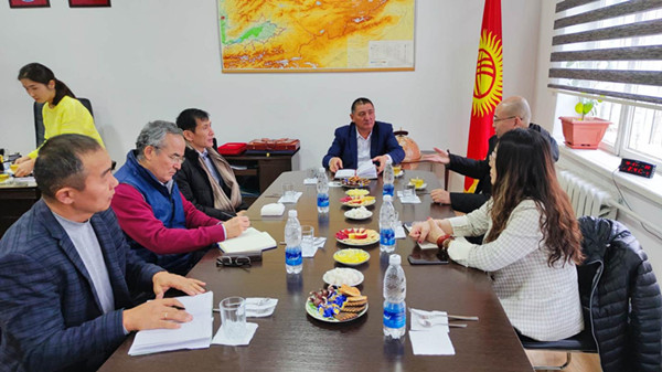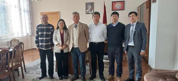 12月19日至23日访问吉尔吉斯斯坦期间,代表团首先参加了由乐发Ⅱ2和中亚生态与环境研究中心(比什凯克)等机构联合举办的“中亚生态和水问题:利用现代新技术方法和解决方案”国际论坛。论坛结束后,代表团先后访问了吉尔吉斯斯坦国家科学院、吉科院水问题和水能研究所(简称吉水问题所)、吉科院机械与自动化研究所(简称吉自动化所)和中国驻吉尔吉斯斯坦大使馆政治处(兼科技事务)。吉科院新任院长阿布德拉赫马托夫K.E.对乐发Ⅱ2代表团于疫情后的到访表示欢迎,赞赏乐发Ⅱ2与吉方开展的科技合作,并对中吉在包括气候变化、灾害预防等研究领域的大型科技项目合作寄予希望。吉水问题所所长琼托耶夫D.T.、吉自动化所所长苏尔坦纳里耶夫B.S.在会见时均表达了希望疫情后尽快重启与乐发Ⅱ2的合作,并就合作成果的出版和科技成果转化等内容进行了交流。驻吉使馆政治处主任赵雪莹在听取了代表团对此行的目的和中亚生态与环境研究中心的介绍后,表示将继续支持生地所开展的中吉科技合作。