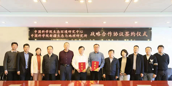 生态环境研究中心主任朱永官院士,党委书记、副主任房自正,党委副书记、纪委书记占剑等参加座谈交流;朱永官、张元明代表双方签署战略合作协议