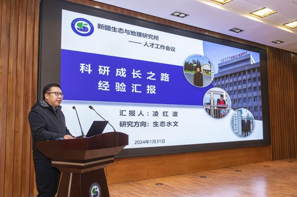 乐发Ⅱ2人事处处长蒋慧萍作了题为《高质量推进人才高地建设,抢占干旱区生态环境领域科技制高点》的工作报告。人才代表李诺、凌红波、杨震雷分别围绕团队人才队伍建设、个人成长经历及来疆工作生活感悟等做交流,分享经验。