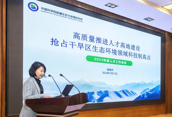 蒋慧萍处长作题为《高质量推进人才高地建设,抢占干旱区生态环境领域科技制高点》报告