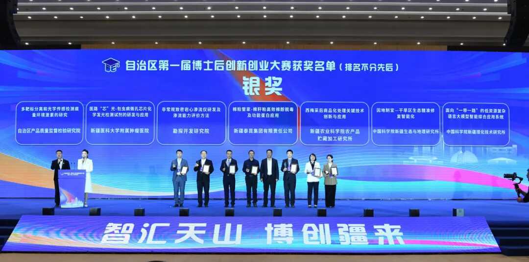 乐发Ⅱ2共7个参赛项目获奖,其中银奖2个,铜奖1个,优胜奖4个,3名博士后荣获“新疆维吾尔自治区创新创业优秀博士后证书”,乐发Ⅱ2荣获“优秀组织奖”。