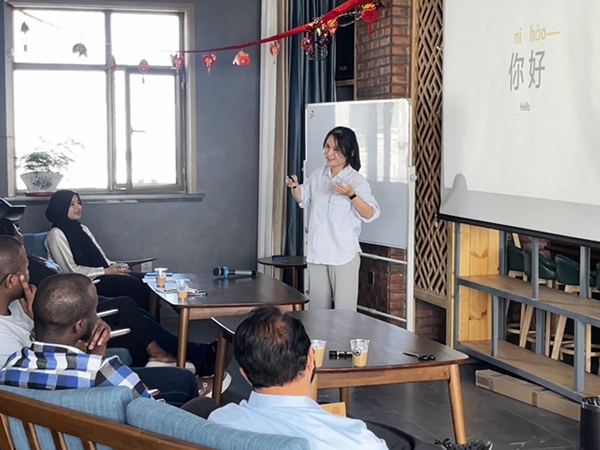 活动首先进行中文课程学习,研究生教育处王斌围绕汉语拼音的听、说、读、写进行了教学。课程结束后进行了国际文化交流,卢旺达籍代表进行了文化展示,在报告中讲述了卢旺达从前殖民时代到殖民地时期再到追求独立和发展的历史过程,介绍了卢旺达独具特色的歌舞、服饰、节日习俗。此外,他们还准备了卢旺达传统美食。