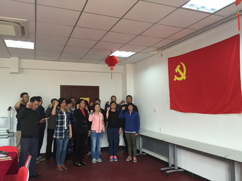 最后,由支部书记带领下,全体与会党员庄严举起右手,面对鲜艳的党旗进行宣誓,重温入党誓词,各位党员的心情都无比激动,宣誓后纷纷表示要更加扎实地工作,以实际行动践行对党忠诚,承担起科研人员应有的责任。
