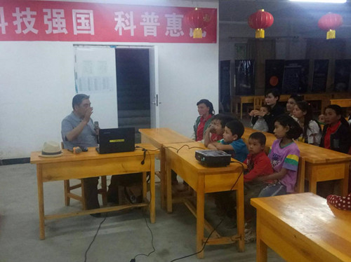 28日晚上,墩阿热希村委会的大院里,欢歌笑语,热闹非凡,放了学的孩子们,收了工的村民们,吃完晚饭的老人们,陆陆续续来到了村委会的大院里,人人脸上洋溢着幸福快乐的笑容,孩子们围着舞蹈队的队员们,模仿和学习教他们的舞蹈动作,一招一式学的有模有样。大人们都静静地坐在会议室里,聆听热合木都拉研究员给他们进行的科普知识讲座。