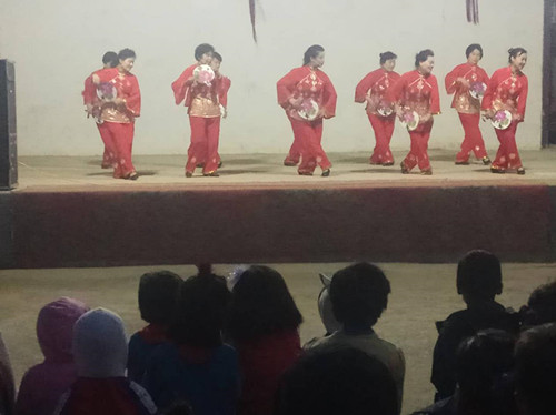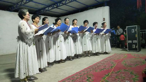22:00整,随着欢快的音乐响起,墩阿热希村迎“七一”文艺演出拉开序幕。村委会大院的操场上,坐满了将近500位村民。新疆分院系统退休职工志愿者们带来了她们精心准备的六个节目,分别是:古典舞蹈《梨花颂》、女生小合唱《再唱山歌给党听》、生地所孙莉研究员的古典折扇独舞《天仙子》、男女声合唱《塔里木河》、中阮演奏《茉莉花》和《红星闪闪》、集体舞蹈《祝福祖国》。墩阿热希村的村民和幼儿园的孩子也分别表演了她们精心准备的舞蹈节目。最后的节目是所有参演的演员同台齐声合唱了《我和我的祖国》,将演出推向高潮。