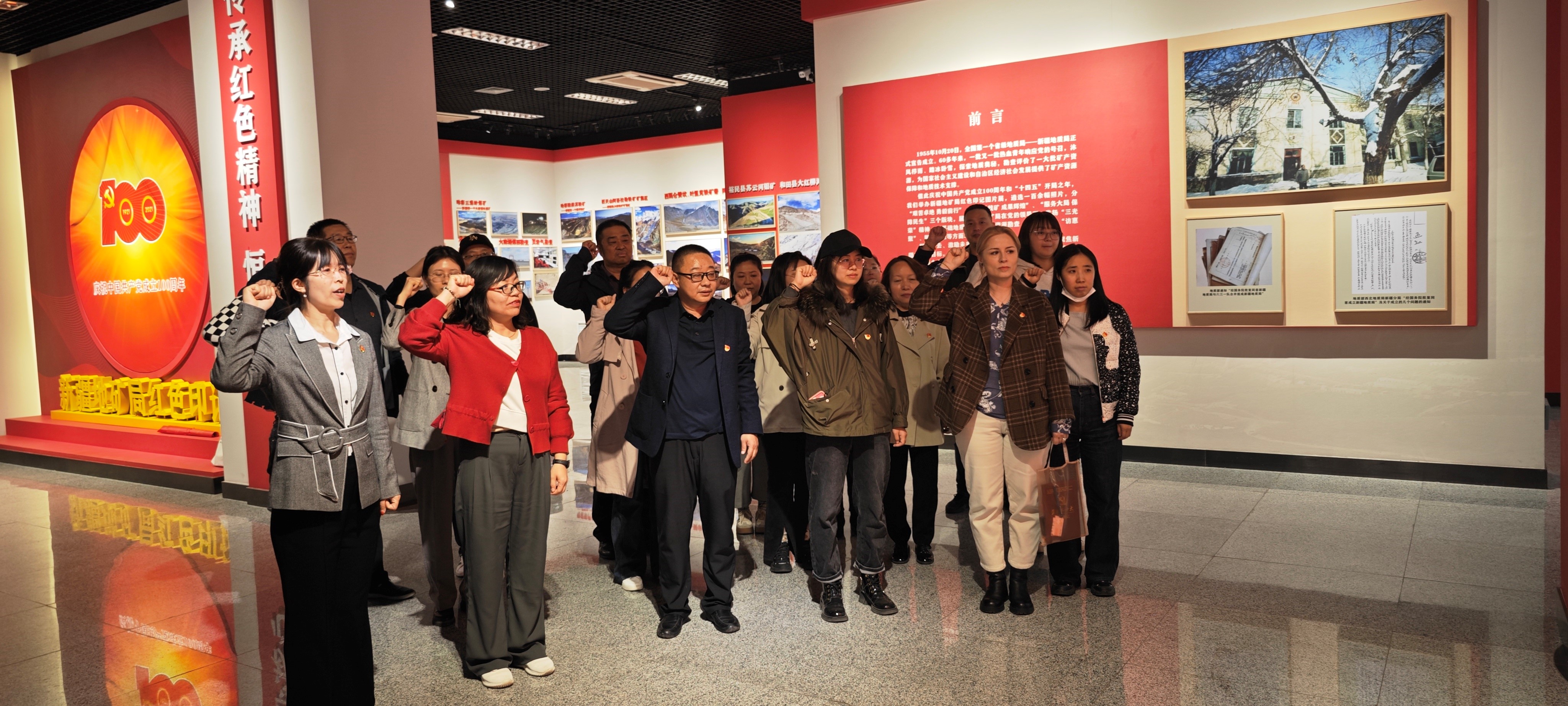 全体党员参观了新疆地质矿产博物馆,充分了解与认识了新疆的金属、非金属、能源矿产和宝玉石矿产,以及旅游地质和环境地质情况。同时,参观了地质博物馆的红色展厅,了解老一辈地质工作者的工作环境及工作条件,学习老一辈科研工作者艰苦奋斗、勇于争先的奋斗精神。参观结束后,全体党员重温入党誓词,牢记光荣使命。