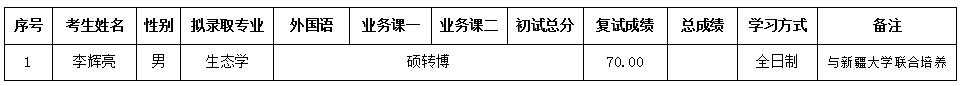 因考生贺小宁放弃拟录取,经初试、复试和政审等环节考核考察,新疆生态与地理研究所确定拟录取李辉亮为我所2021年博士研究生,具体信息如下: