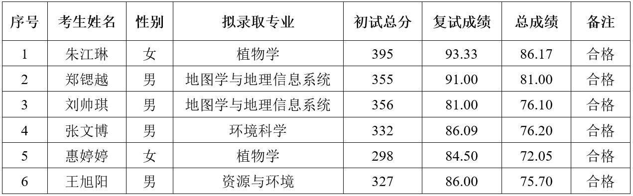 经初试、复试等环节考核考察,新疆生态与地理研究所确定拟录取以下学生为我所2022年硕士研究生,具体名单如下: