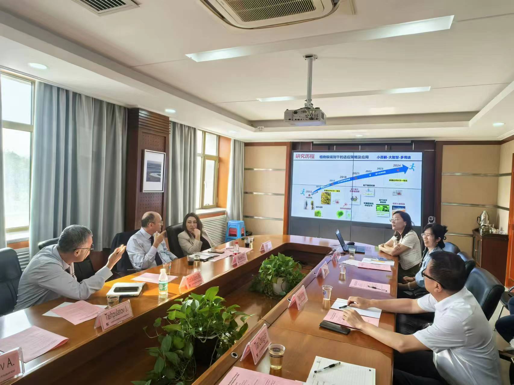 乔建芳从使命定位、历史沿革、研究机构、国际合作、知识分享等方面简要介绍了研究所的基本情况,田长彦、李小双分别就干旱区盐碱地生态治理关键技术、沙漠苔藓耐旱机制研究及遗传资源利用进行了汇报交流,双方就盐碱地生态治理、土壤理化分析、苔藓遗传资源利用等进行了深入探讨。