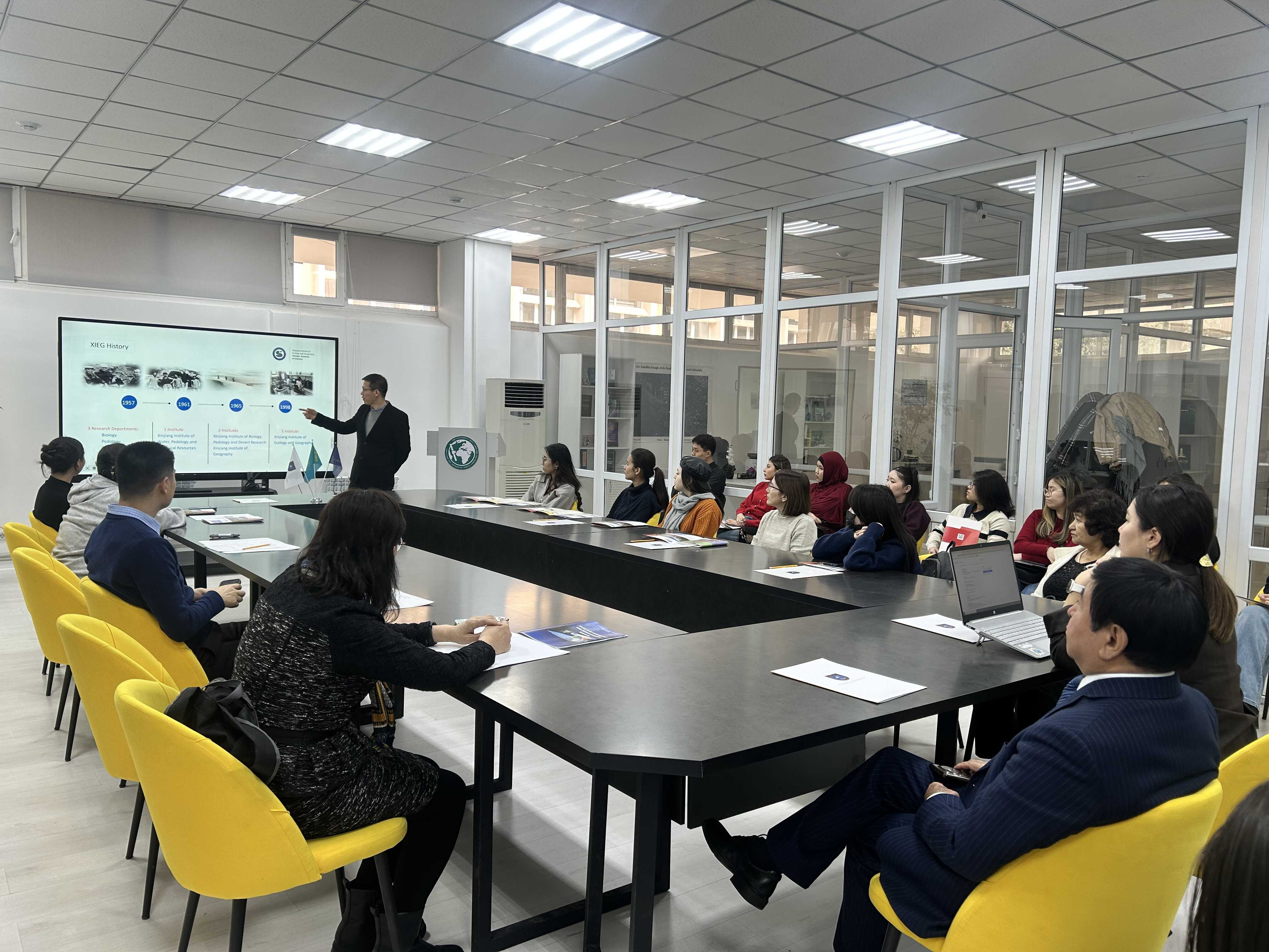 为进一步拓展中亚青年优秀人才培养, 12月8日至12月13日,乐发Ⅱ2(以下简称“乐发Ⅱ2”)研究员、中国科学院中亚生态与环境研究中心副主任吉力力·阿不都外力带队,一行6人赴哈萨克斯坦开展招生宣传活动。活动期间,招生宣讲团先后走进哈萨克斯坦土壤与农业化学研究所、哈萨克斯坦动物研究所、阿里·法拉比哈萨克国立大学、国立欧亚大学、赛福林农业技术大学,活动采用“现场+线上”同步联动模式,通过政策解读、成果展示、互动交流等丰富形式,向当地科研人员、高校师生全面介绍乐发Ⅱ2的全国重点实验室、研究生招生政策、学科优势与培养特色,同时,哈萨克斯坦植物研究所、哈萨克斯坦种植业与农作物生产研究所、哈萨克斯坦经济研究所和哈萨克国立农业大学等多家机构也主动组织人员参与宣讲活动。通过本次多维度、广覆盖的交流,成功搭建起中哈双方人才交流与联合培养的沟通桥梁。