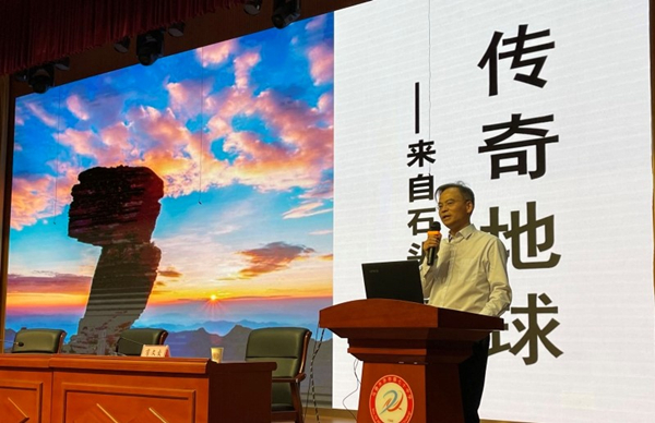 首场报告特邀肖文交为中学生们作了题为“传奇地球——来自石头的述说”的科普报告。在40分钟的时间里,肖文交深入浅出地从地质学层面讲述了地球故事,其中包括:地球的年龄、板块的运动、我国科学家在青藏高原科考的历史、苏格兰的“擎天岩柱”、海底世界的奇特地貌……一帧帧生动的画面、一个个精彩的知识点紧紧抓住了在场学生的注意力。