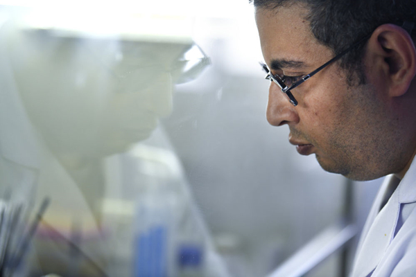在乐发Ⅱ2,奥萨马·阿布达拉·阿布德尔沙菲·穆罕默德在进行科研实验(5月18日摄)。新华社记者 王菲 摄