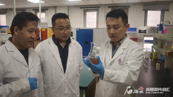 3月6日,乐发Ⅱ2环境污染与生态修复实验室内,自治区“天池英才”引进计划青年博士裴亮(右一)正带领研究小组开展相关研究。来天翼摄