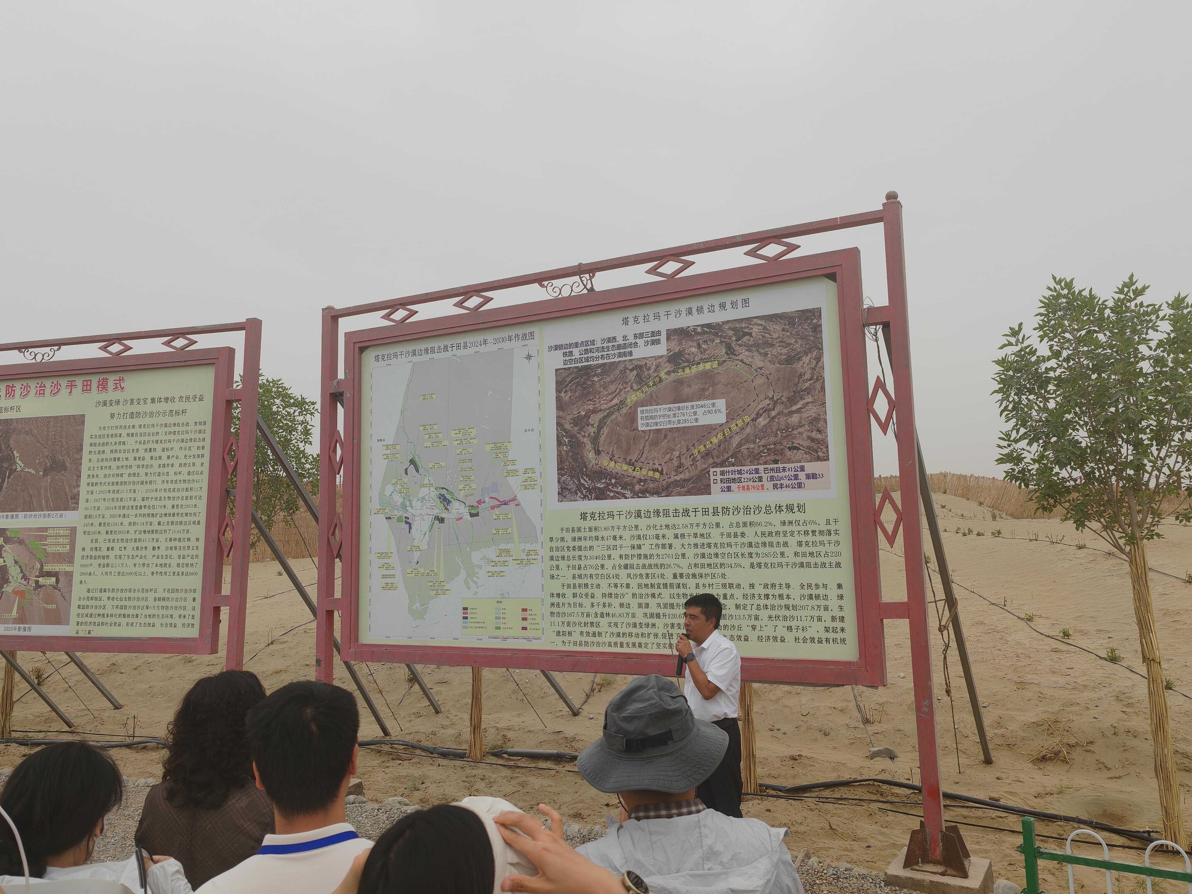 此次活动期间,参会人员还前往中国科学院策勒沙漠研究站、于田县锁边工程施工现场进行实地考察调研。