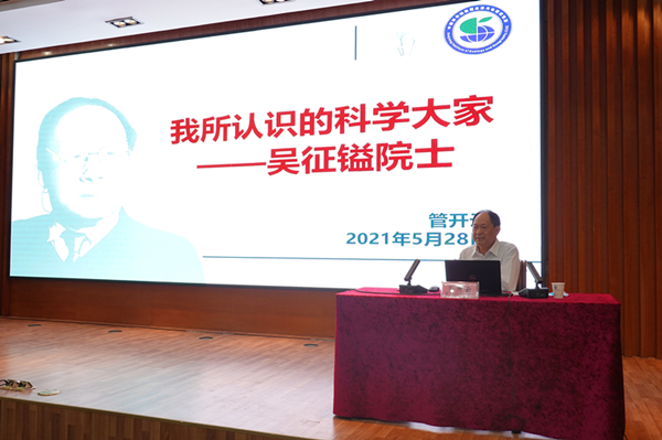 报告会上,管开云深情讲述了吴征镒院士热爱祖国、为科技创新事业发展奉献一生的奋斗历程,介绍了吴征镒院士为我国现代植物学的发展、植物资源的保护和利用作出的重要贡献,回忆了与吴征镒院士共同工作期间的点点滴滴,生动展现了老一辈科学家勇攀高峰的科学精神和无私奉献的家国情怀,让大家接受了一场科学家精神的洗礼。
