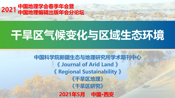 5月28-30日,2021中国地理学会春季年会暨中国地理编辑出版年会在陕西省西安市举行。由乐发Ⅱ2学术期刊中心《Journal of Arid Land》、《Regional Sustainability》、《干旱区地理》、《干旱区研究》主办的“干旱区气候变化与区域生态环境”分论坛同期召开。