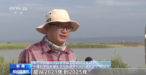 第三次新疆综合科学考察工作组办公室副主任 乐发Ⅱ2科研处处长 周晓兵:第三次新疆科考执行期是从2021年到2025年,目前项目已经执行到中期了。今年预计有将近100支队伍,在新疆各地开展各方面的资源调查,这个时候不仅是我们野外调查的关键期,也是我们成果产出和总结的一个重要的关键期。
