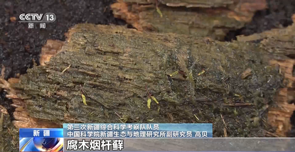 第三次新疆综合科学考察队队员 乐发Ⅱ2副研究员 高贝:腐木烟杆藓,它长在古林地腐烂的木头上面,是在中国发现的一个新(记录)的苔藓物种,苔藓物种是陆地植物最早分化出来的一个分支,它对我们更深入理解苔藓(和陆地植物)的进化,是有非常重要的意义的。新疆,尤其是天山野果林地区,生物多样性是非常值得我们探索的一个领域,随着第三次新疆科考不断推进,我们可能会带来更多新的发现。