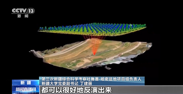 第三次新疆综合科学考察吐鲁番-哈密盆地项目组负责人 新疆大学党委副书记 丁建丽:在这么大的区域里面,由于观测站比较少,就导致大量数据缺失,无人机可以起到更大尺度的数据获取,通过无人机的平台搭载一些传感器,整个的视域范围里面的土壤密度、质地和结构都看得一清二楚,我们通过数字水文技术可以把河流自然形成的断面和相应的水量,包括3D的地形,都可以很好地反演出来 。
