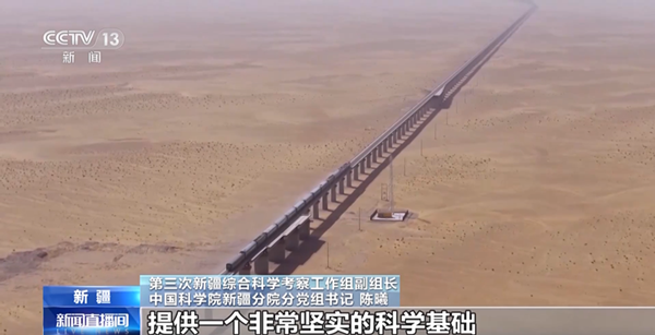 第三次新疆综合科学考察工作组副组长 中国科学院新疆分院分党组书记 陈曦:把前两次科考的数据和第三次科考数据融为一体,为我们查清新疆自然生态环境近30年来变化,提供了科学依据;为未来新疆10年、20年、30年怎么样发展,怎么样利用好自然资源、保护好生态环境,提供了技术的路线图,也是为我们新疆更好融入国家“一带一路”建设和丝绸之路经济带核心区建设提供一个非常坚实的科学基础。