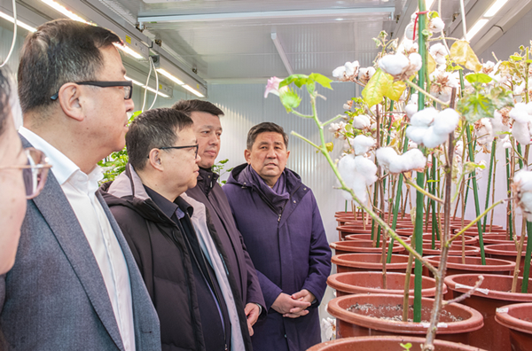 调研组一行还参观了中心实验室、抗逆植物基因资源保育与利用重点实验室等,工作人员围绕荒漠植物的保育和利用进行介绍,并对特色濒危荒漠植物组织培养和扩繁、荒漠植物遗传转化体系和现代分子生物学技术,以及挖掘优质抗逆基因资源服务干旱区农作物现代分子育种等工作进行了解析。