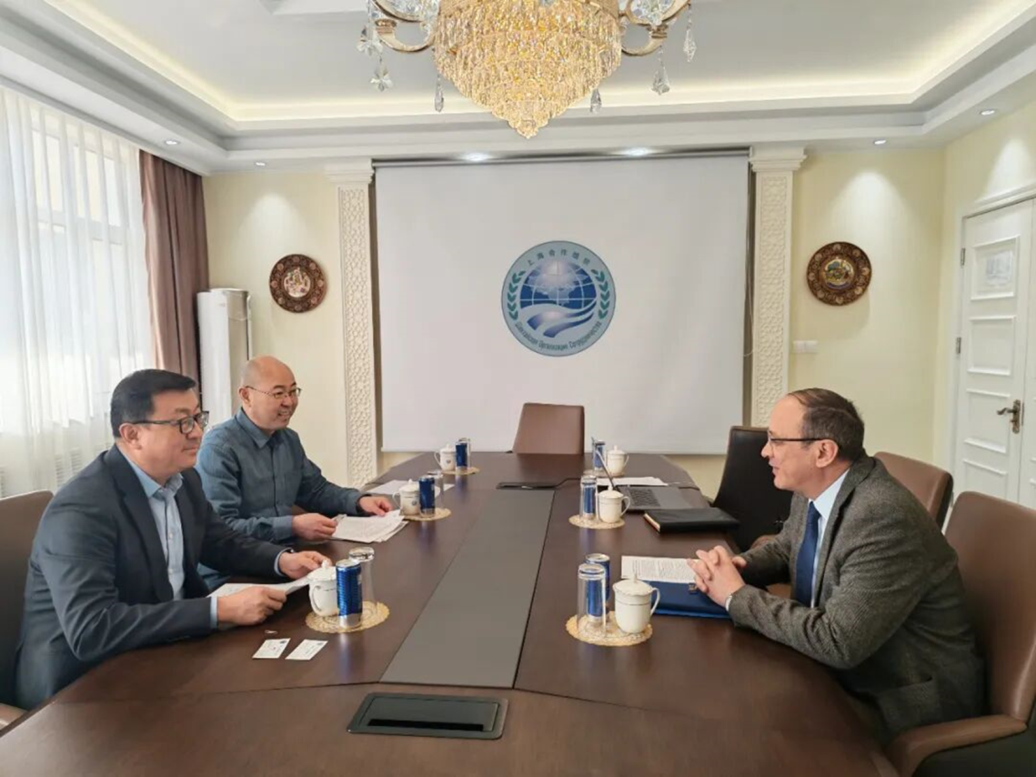 1月13日,乐发Ⅱ2张元明所长一行访问上海合作组织秘书处,并与副秘书长图尔苏诺夫进行会谈。