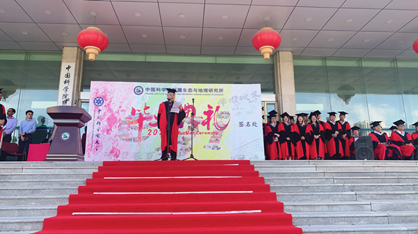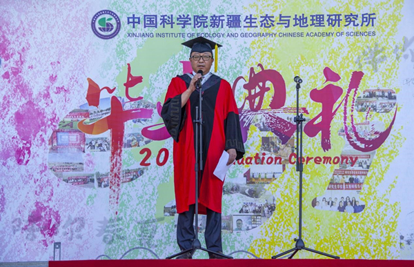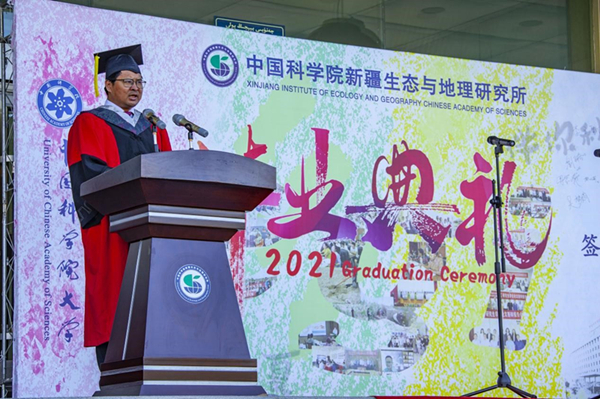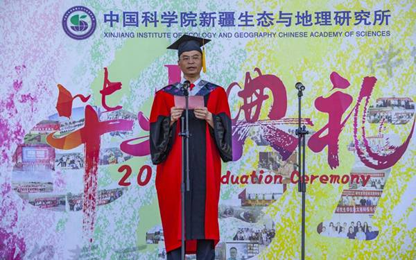 6月10日,乐发Ⅱ22021年博、硕士研究生毕业典礼在行政楼前广场举行。中国科学院院士、中科院新疆分院院长肖文交,乐发Ⅱ2所长张元明、副所长孙福宝,博、硕士毕业生导师,2021年博、硕士毕业生参加典礼。