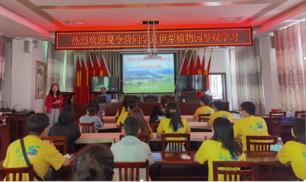 7月17日,全体营员在伊犁植物园学习实践,伊犁植物园主任管开云作了题为“中亚干旱区植物资源的战略意义及保育规划与实践”的报告,并带领营员参观植物园科普馆,介绍了植物引种培育、园区发展历史、研究进展等。伊犁植物园副主任刘会良在园区、实验示范区为营员介绍了栽培植物品种及生长特性。
