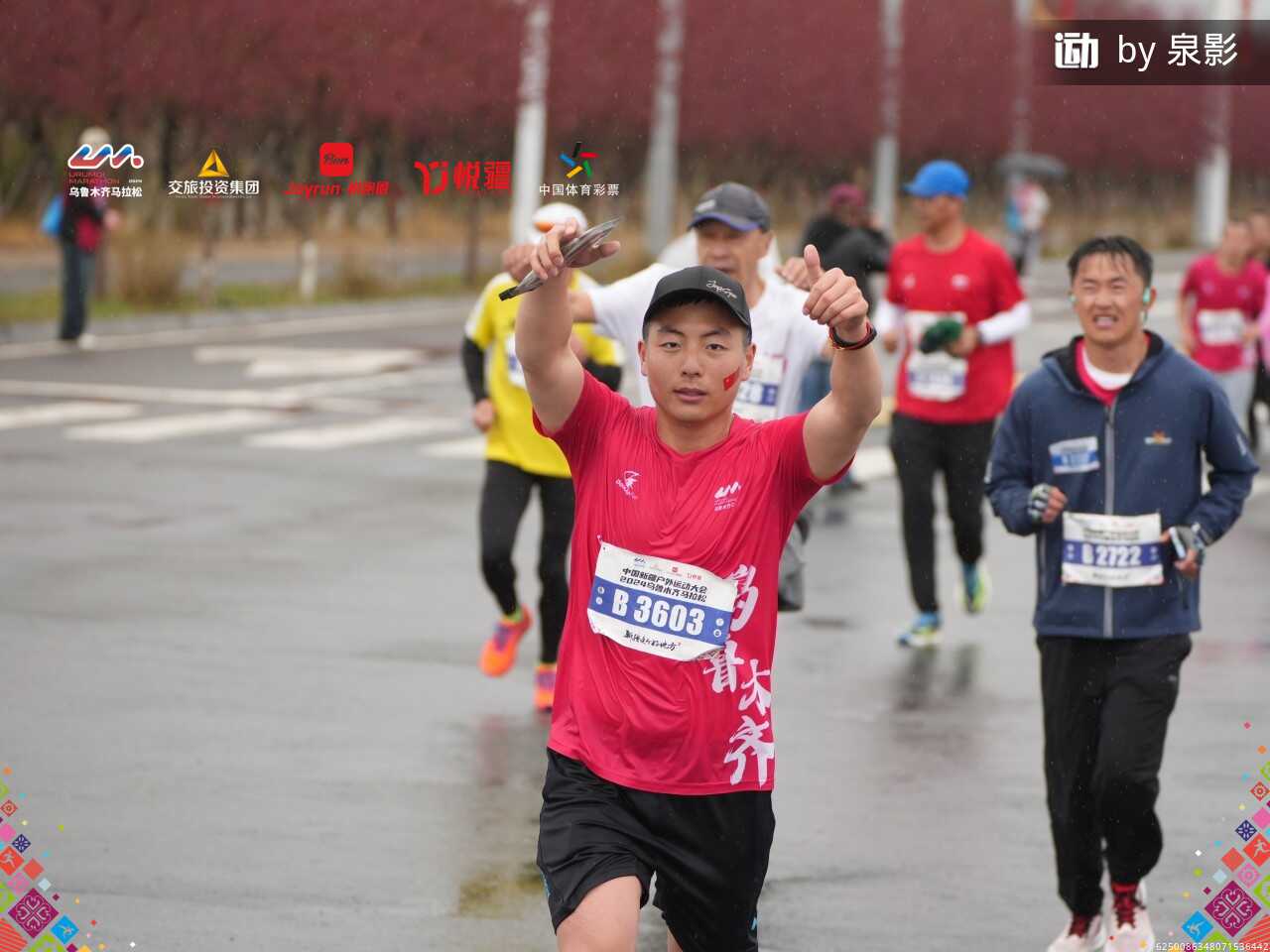 尽管受天气影响,比赛当天有降雨过程,但这并未减弱参赛者的热情。早上11点,来自研究所的9位参赛代表在平时的训练地点集合,随后他们共同来到天山脚下的赛道上,和其他来自不同领域的参赛者一同出发,在雨中角逐,完成马拉松、半程马拉松及欢乐跑项目的比赛。
