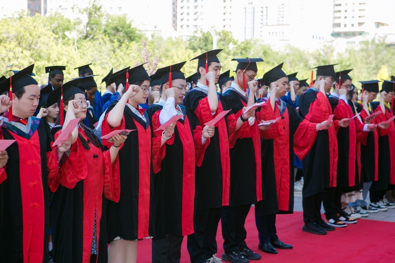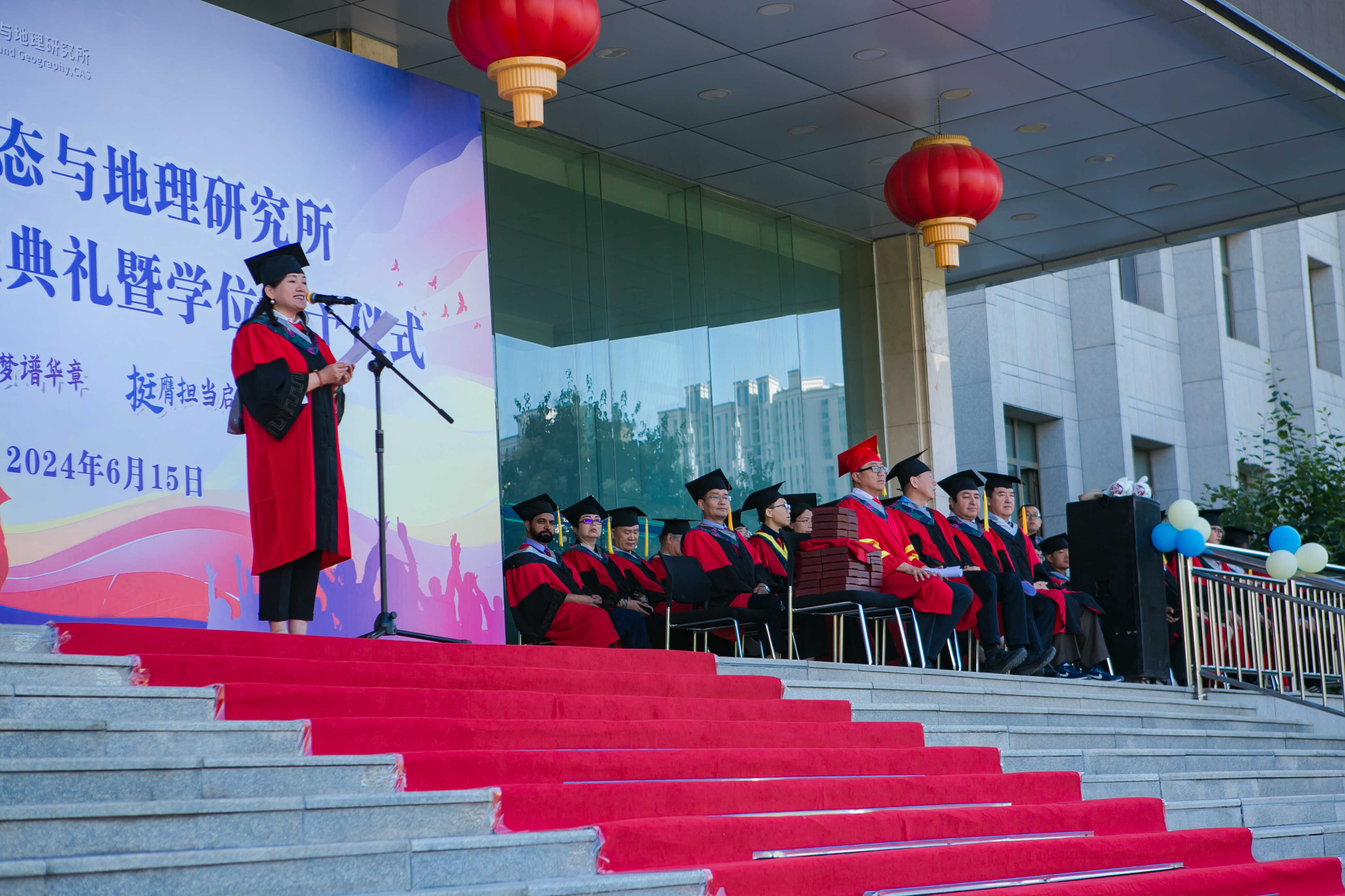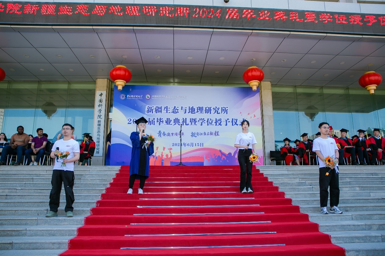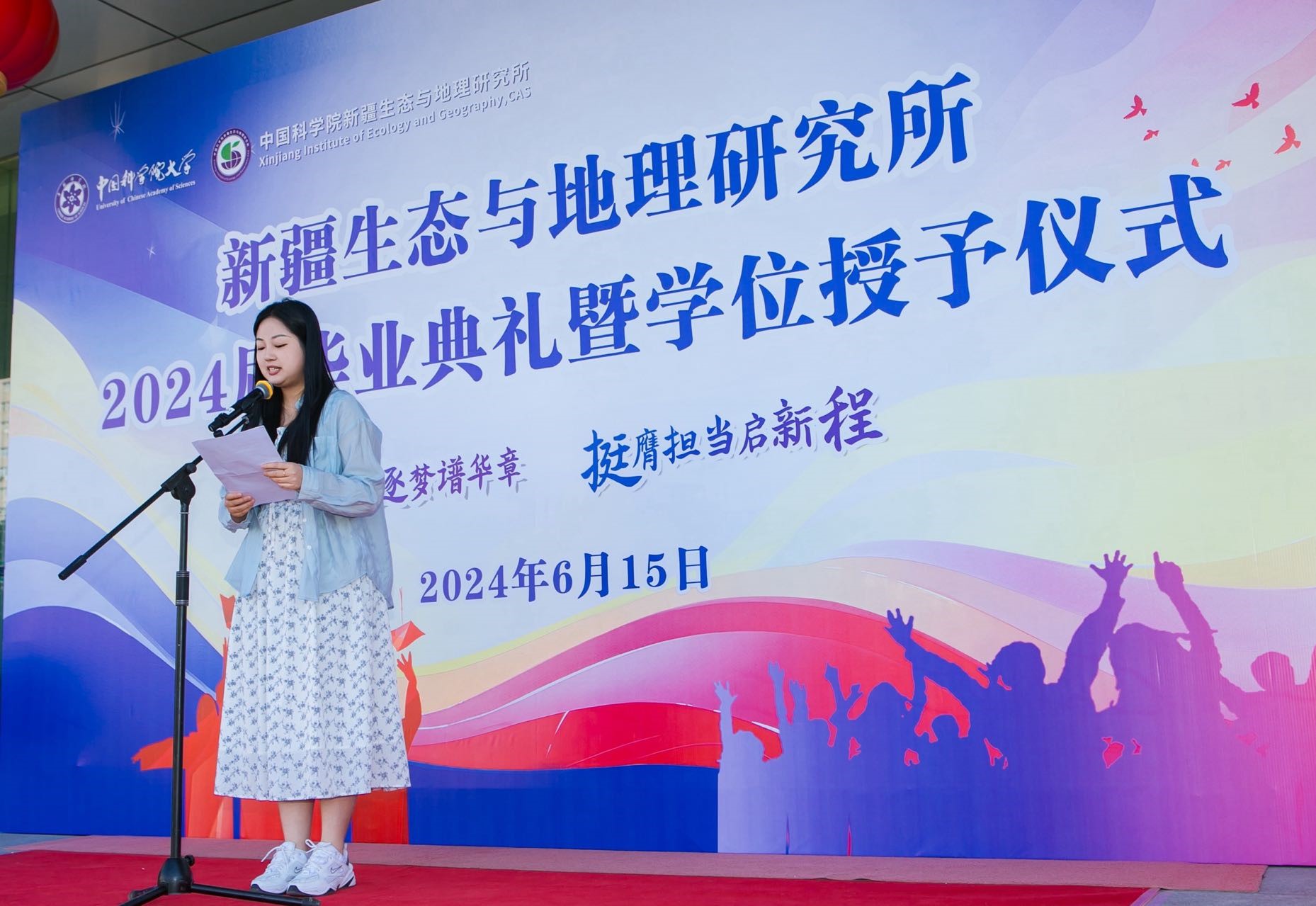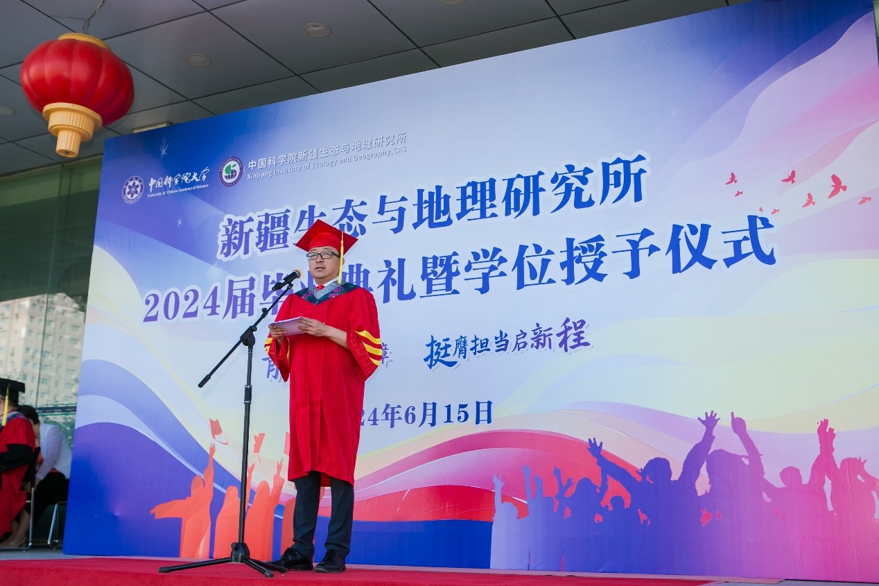 乐发Ⅱ2党委副书记、纪委书记吉力力·阿不都外力宣读2024年博、硕士毕业生名单,祝贺99名毕业生圆满完成学业,开启人生新征程。乐发Ⅱ2所长张元明向全体毕业生致辞,祝贺毕业生顺利完成学业,寄语他们勇担时代重任,在抢占干旱区科技制高点过程中大有所为,始终保持勇于探索的精神,为国家和社会的发展贡献力量。乐发Ⅱ2党委书记、副所长张向军带领全体毕业生宣读毕业誓词,“铭记教师的教诲,履行时代赋予的使命,崇尚科学,追求真理……”,铮铮誓言充分彰显了毕业生们在今后人生道路上将带着研究所的教诲奔赴新的征程。